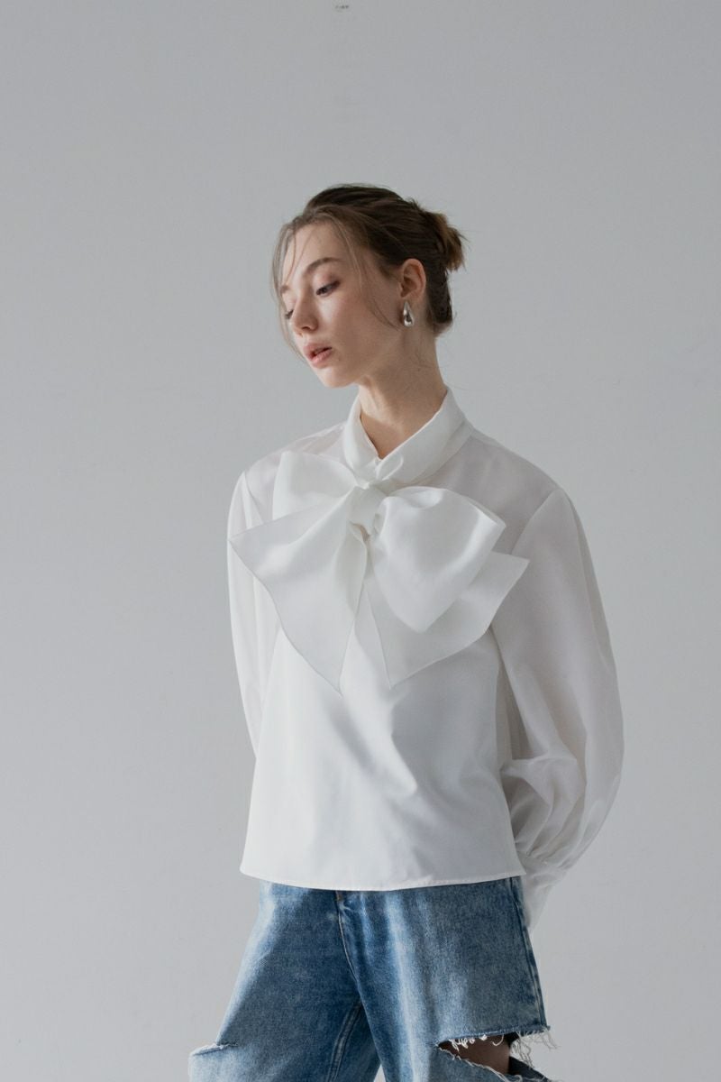 classy ribbon blouse/white