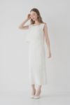 程よいIラインシルエットが縦のラインを引き立て、すっきりとした印象に。