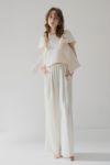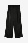 ウエストゴム仕様でリラックス感がありながらも、サテンの美しい光沢がきれいめな印象を演出します。