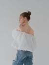 ほどよい肌見せが叶う、女性らしさを引き立てるジャガードオフショルトップス。