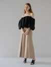 美しいデコルテラインを演出し、全体に程よくボリュームを持たせることで体型バランスを整え、1枚で華やかなスタイリングが完成します。