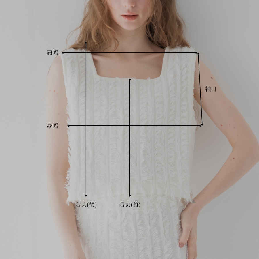 ふんわりと光をまとったようなフリンジが印象的なベスト。