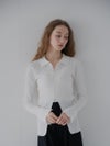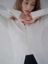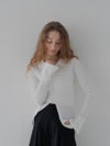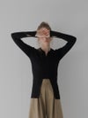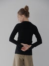 細い糸を2本撚り合わせたポリエステル素材を使用し、軽やかでやわらかな着心地に仕上げました。身体に沿うようなリブ編みが、すっきりとしたシルエットを引き立てます。