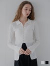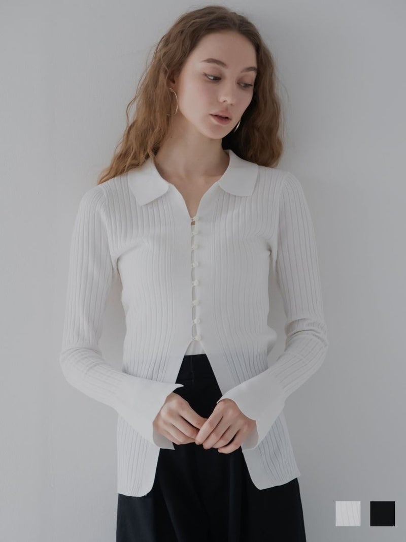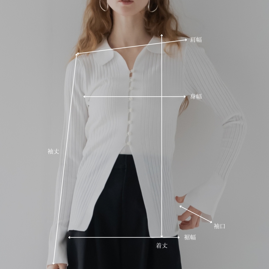 さりげない襟付きデザインが、装いにほどよいきちんと感を添えるリブニット。