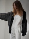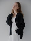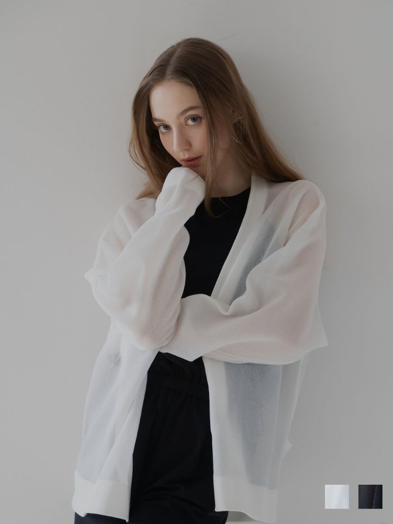 ふんわりとしたオーバーサイズシルエットが魅力のシアーカーディガン。