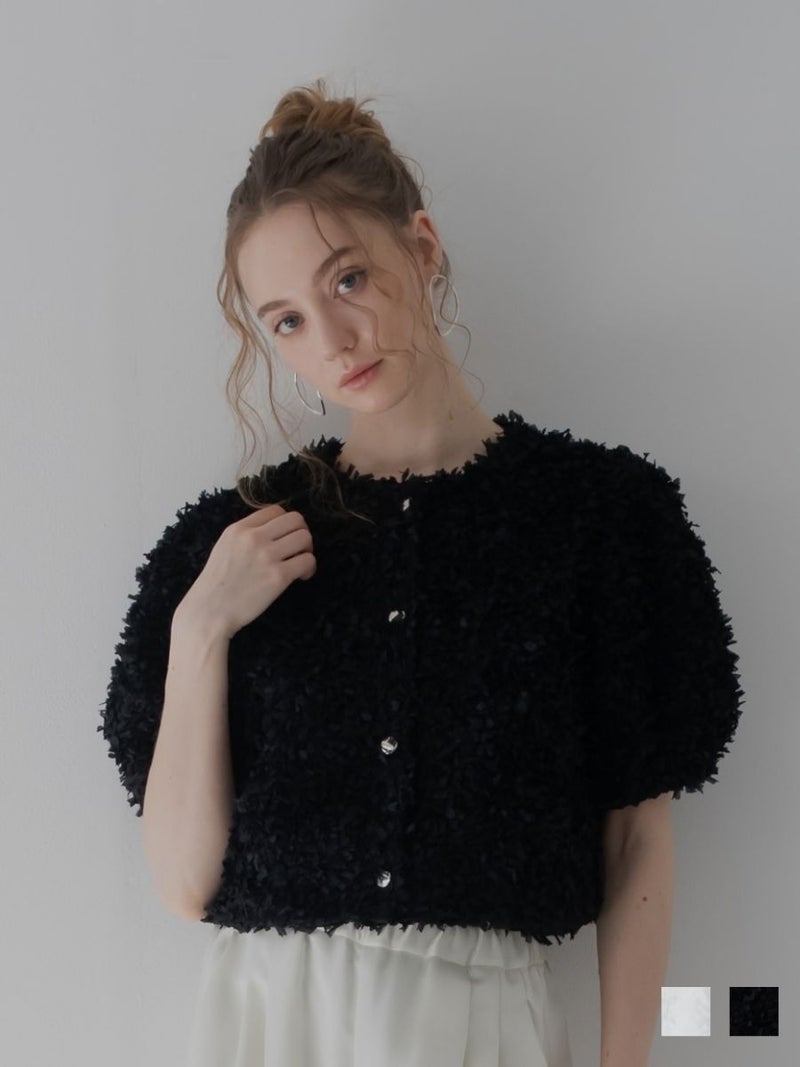 表情のある編み地が印象的な、テープヤーンブルゾン。