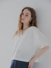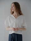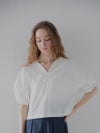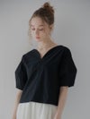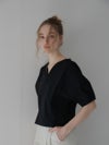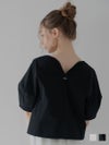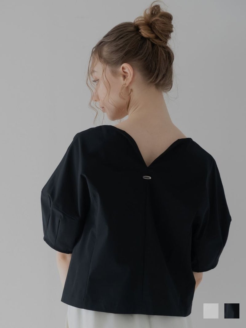 デコルテを美しく見せるネックラインが印象的なカーブネックブラウス。