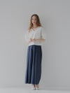 ほんのり光沢のあるなめらかな素材を使用し、きちんと感がありながらもやわらかな着心地に仕上げました。ストレッチが効いているため動きやすく、日常にも取り入れやすいのが魅力です。シワになりにくく、きれいなシルエットを保てるのも嬉しいポイント。