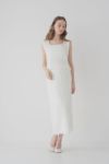 程よいIラインシルエットが縦のラインを引き立て、すっきりとした印象に。