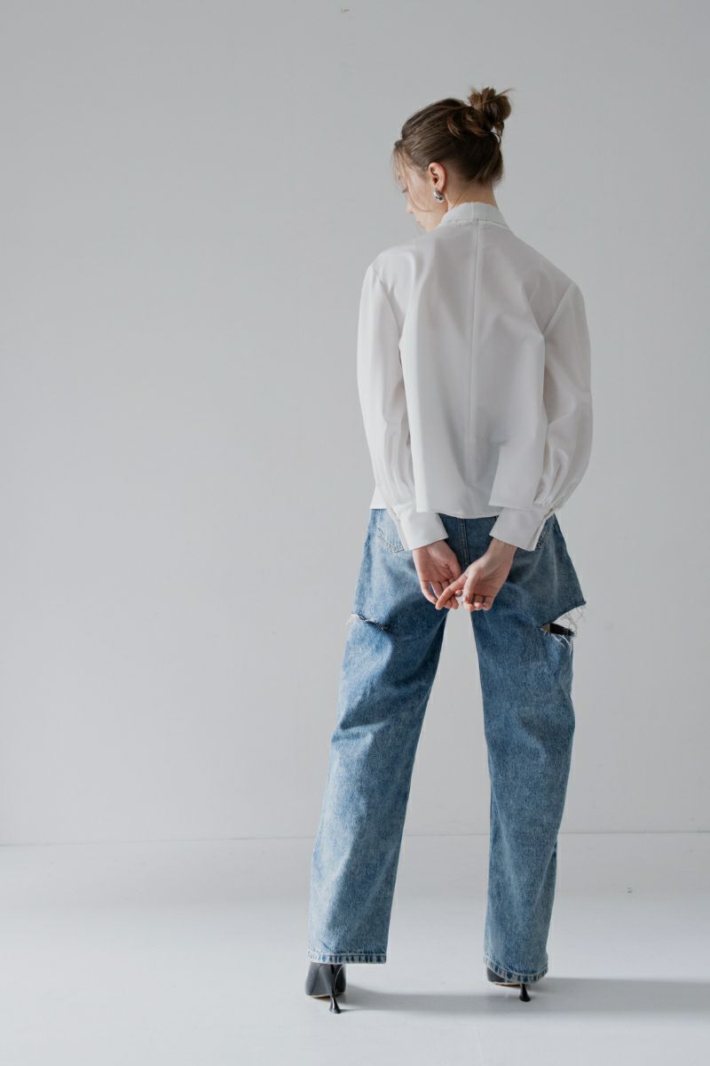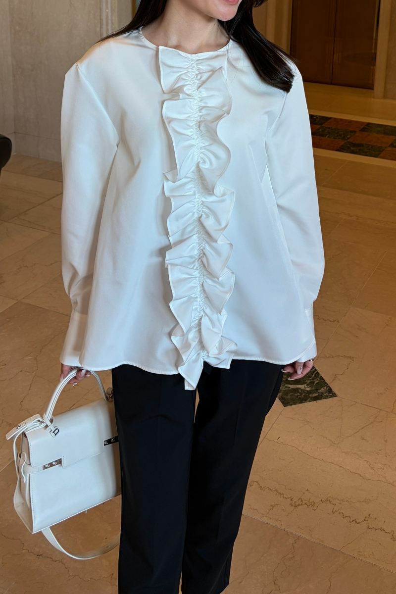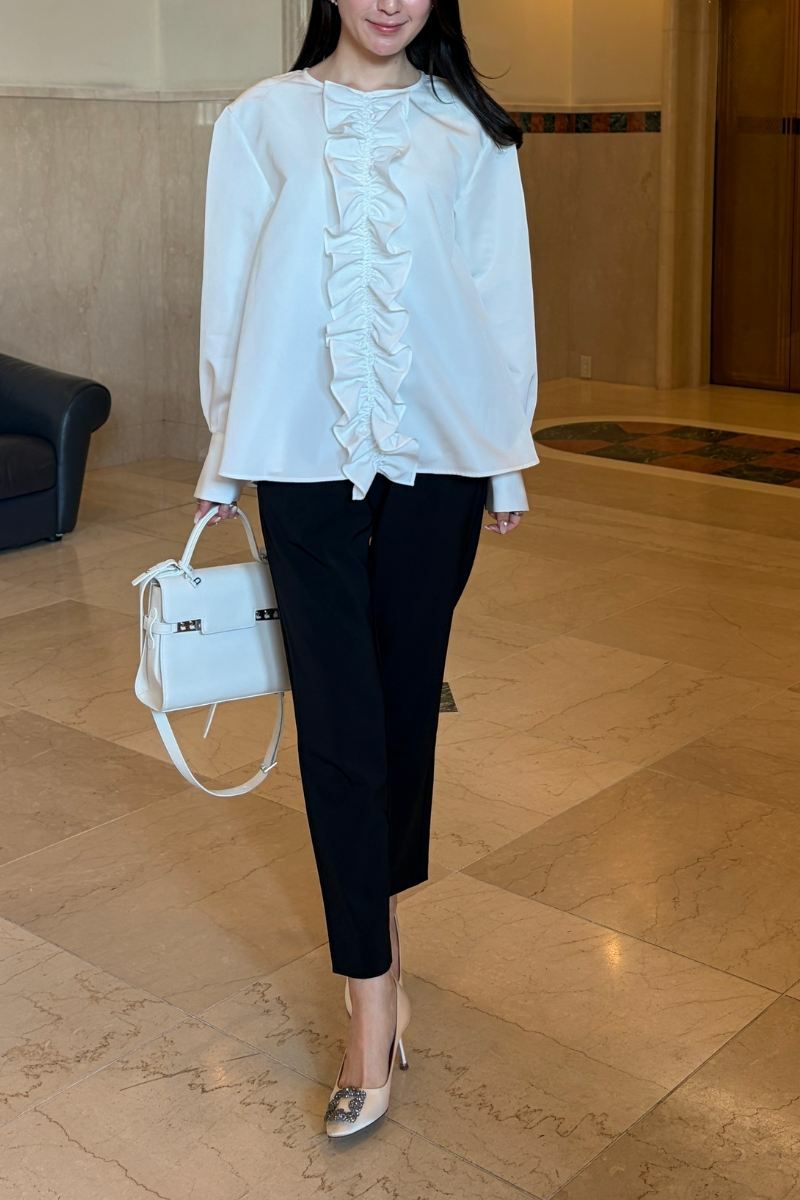 frilled flared blouse/white