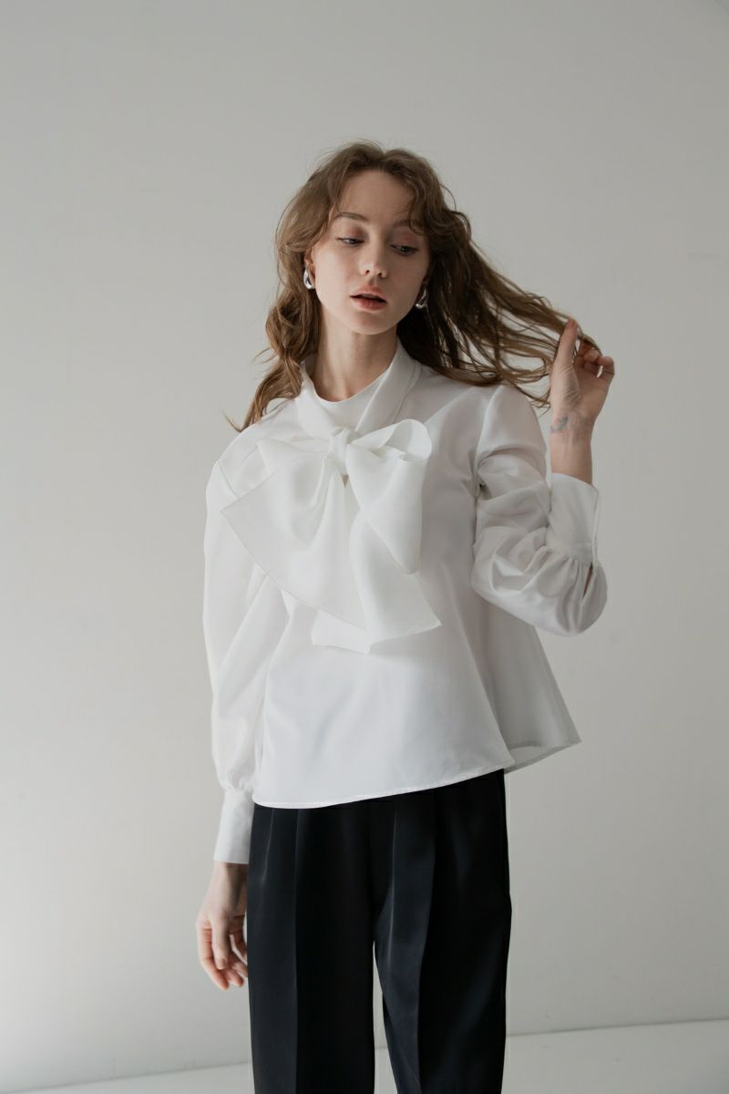 classy ribbon blouse/white
