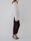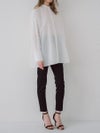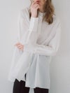 シワになりにくい素材を使用し、一見シンプルなデザインですが、サイドのスリットと程よい前後差が大人の抜け感を演出します。