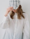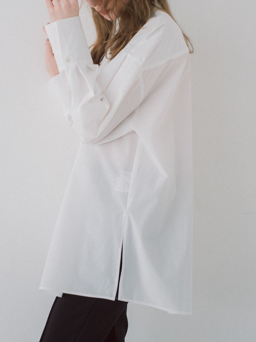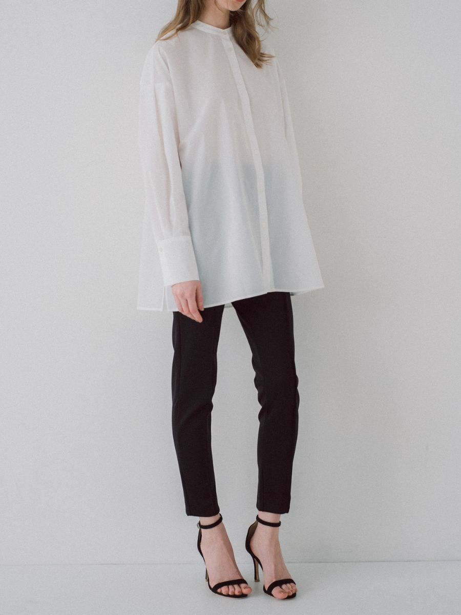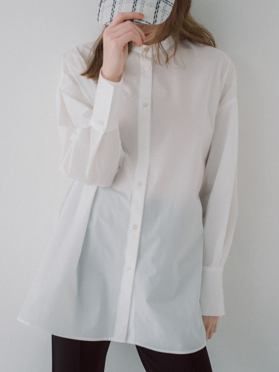 大人気のオーバーシルエットシャツを少し改良し、ノーカラー襟が新登場。