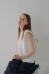 ノースリーブでも露出感を抑えたシルエットで、大人の抜け感を演出。
