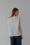 ふんわりと光をまとったような、上品で女性らしい華やかさが魅力のシャギーノースリトップス。