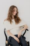 もこもことした柔らかな風合いの糸に、繊細なチュール糸を編み込んだ、オリジナルの上質ニットで仕立てたaimer knit。