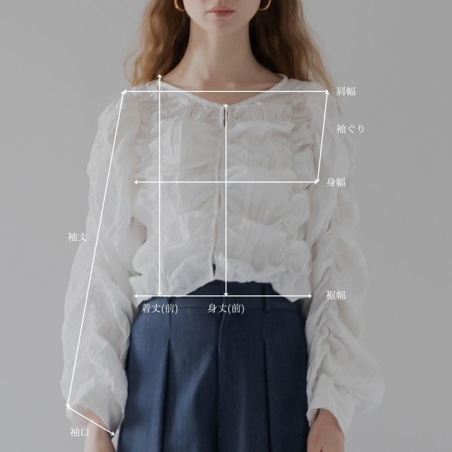 マットな質感の生地にシワ加工とシャーリングを施し、シンプルながらも存在感のある一枚に。