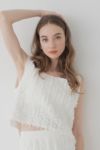 同素材のフリンジスカートと合わせたセットアップスタイルもおすすめです。
