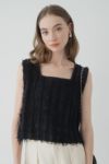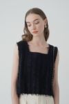 ふんわりと光をまとったようなフリンジが印象的なベスト。