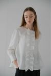 立体的なフリルが特徴で、コーディネートを華やかにしてくれるブラウス。