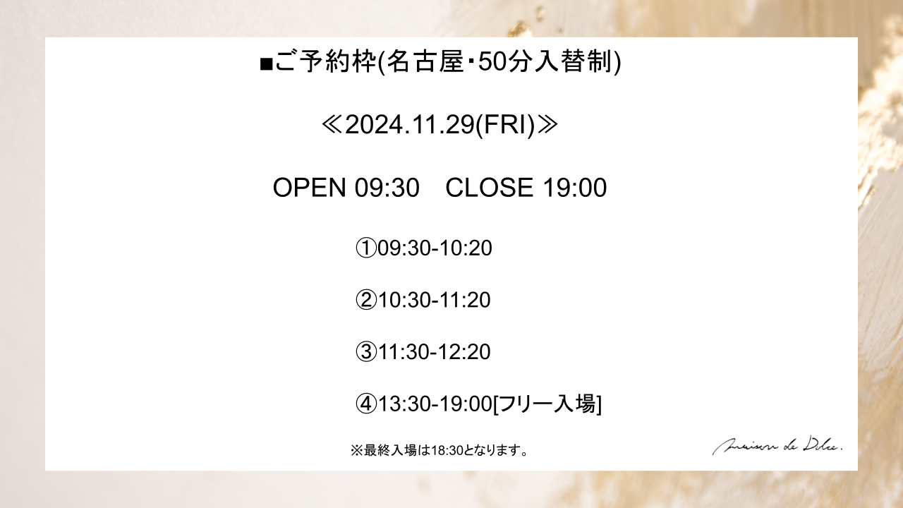 ご来場予約2024/10/28(Mon)22:00~開始