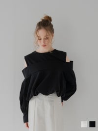 ホワイトを購入しました。今年の商品の中でこれは絶対に欲しくてスタンバイしましたが、実物もとても可愛く、二の腕をうまく隠してくれて華奢見えでした。