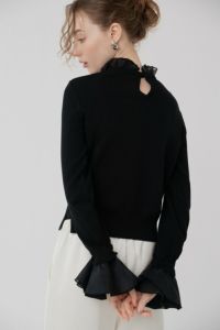 フリルが取れるのでスーツの日は手元のフリルを外してオフィスにも着ていけそうですはーと ニットの生地は思ったより地厚でしっかりしていて冬まで長く着れそうです。再販されたら白も欲しくなりました!