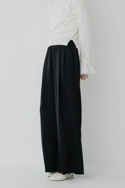 ホワイトに続き、ブラックも購入しました! ウエスト部分が見えるとカジュアルに、隠すとキレイめに、何にでも合わせやすいです♡ 落ち感があり、形もとてもキレイでお気に入りです。 生地も変にテカリすぎず、艶が綺麗です♡ 冬もニットに合わせて、1年通して着るのが楽しみです!!