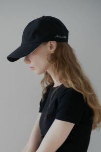 サイズを調整できるアジャスターがキャップの中に収まることで、後ろから見た時にも違和感がないのが好きです。ホワイトは顔を明るくしてくれるので、使いやすいです。また、ロゴが正面ではなく横についているのも、品が良く、カジュアルに見えすぎないのがポイントです。