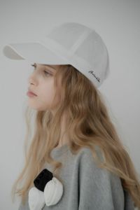 サイズを調整できるアジャスターがキャップの中に収まることで、後ろから見た時にも違和感がないのが好きです。ホワイトは顔を明るくしてくれるので、使いやすいです。また、ロゴが正面ではなく横についているのも、品が良く、カジュアルに見えすぎないのがポイントです。