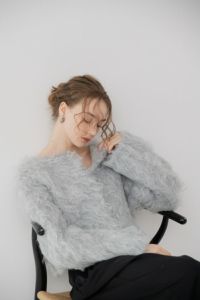 一目見て気に入り購入しました。ウェイブの毛並みが可愛くおしゃれで、ホワイトとグレーの2色のように見えてとても素敵です。ドルチェさんのパンツに合わせて着ています。 見た目以上に華やかさがあると思います。 -
