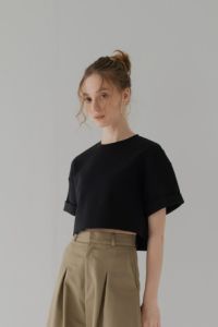 楽しみにしていたTシャツが届きました! 肉厚な生地で着丈短くとても可愛いです。 今年はパンツにベルトを通して見せベルトしたいので、そんな時にこちらのTシャツを合わせたいと思います。袖の折り返しもお気に入りポイントです。 -