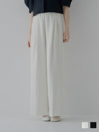 光沢のあるパンツが欲しくてドルチェさんで作って頂けて嬉しくて2色購入しました。 アイボリーの綺麗なお色で白浮せずに合わせやすいです。 ウエストゴムに紐がついてるので短めトップスにはポイントでリボンを見せてもいいかと思います。紐も中にしまえるのでこちらのパンツはこの夏ヘビロテだと確信しました! -