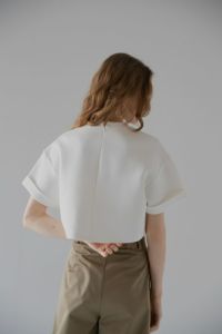 デザインに魅かれて購入しました。 短め丈で合わせやすく生地も柔らかくとても着やすいです。白も検討します -
