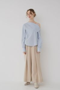 ブルーが絶妙なお色でおしゃれ見えすると思います。肩出してもシャツ素材なのでいやらしくなく着れました。
